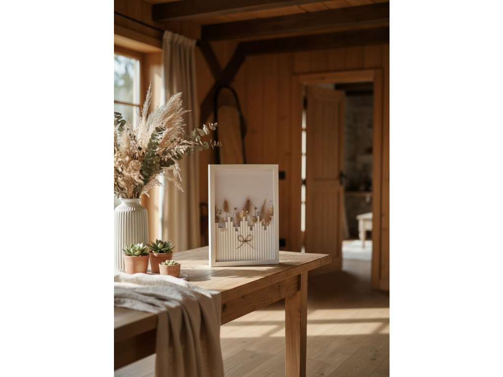 Přírodní rovnováha pracuje s teplými dřevěnými odstíny a neutrální barevností v rámci našeho klasického rozměru 21 × 30 cm. Barevná paleta vychází z přírodních materiálů a klade důraz na jednoduchost a autenticitu. Květinové detaily doplňují strukturu obrazu a podtrhují jeho přirozený charakter. Obraz je ideální volbou pro interiéry, které staví na klidu, přírodních tónech a nadčasovém designu.